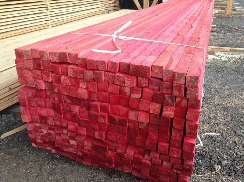 Брусок пропитан специальным материалом. Он обеспечивает ее защиту от плесени и грибка, гниения, повреждения от вредителей. Также дает характерный и яркий красный оттенок.