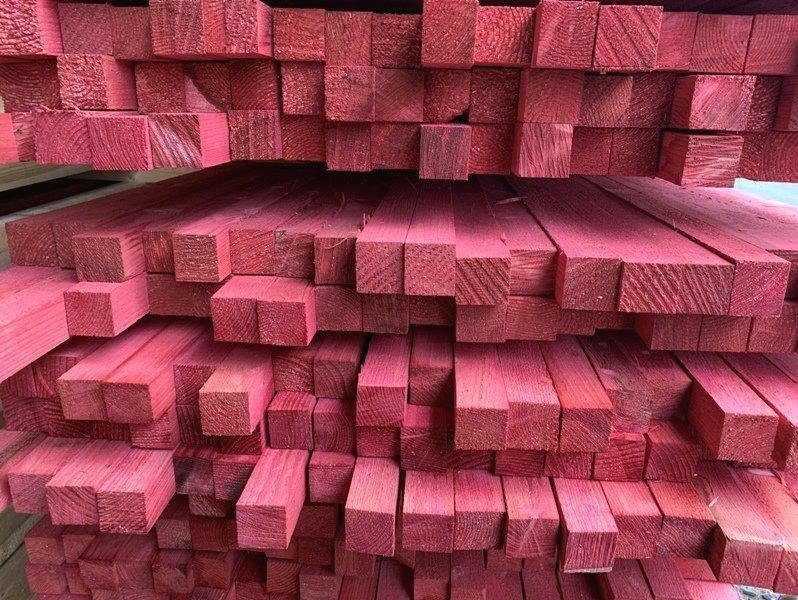 Брусок пропитан специальным материалом. Он обеспечивает ее защиту от плесени и грибка, гниения, повреждения от вредителей. Также дает характерный и яркий красный оттенок.